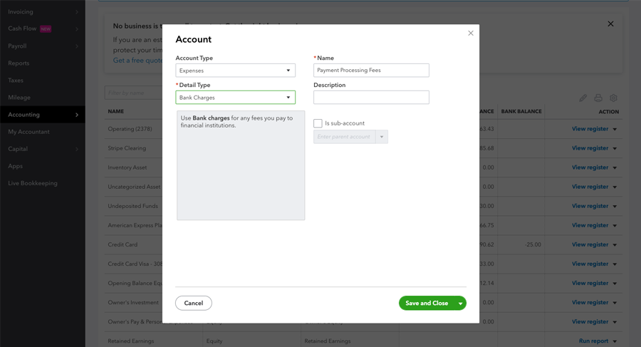 Name: Payment Processing Fees - Click Save & Close.