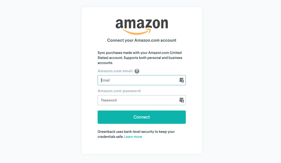 To connect an account you first need to authenticate. Each integration is different but can generally be summarized into one of three methods. When connecting an account, Greenback provides you with detailed instructions on how to authenticate.
