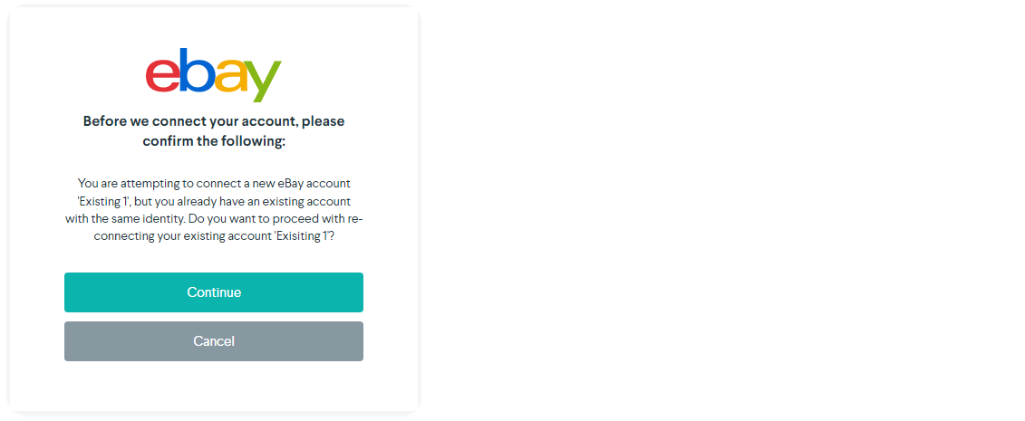 If you are currently logged in to an integration that already has a connection made, Greenback prompts you to "Continue" or "Cancel". Clicking "Continue" resyncs your current connection. Clicking "Cancel" allows you to restart the connection process after you sign out of your already-connected account.