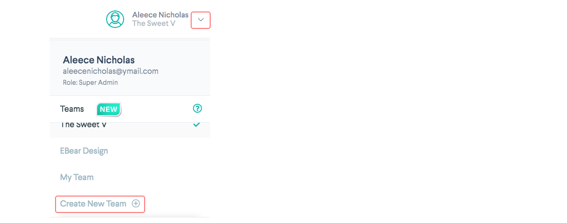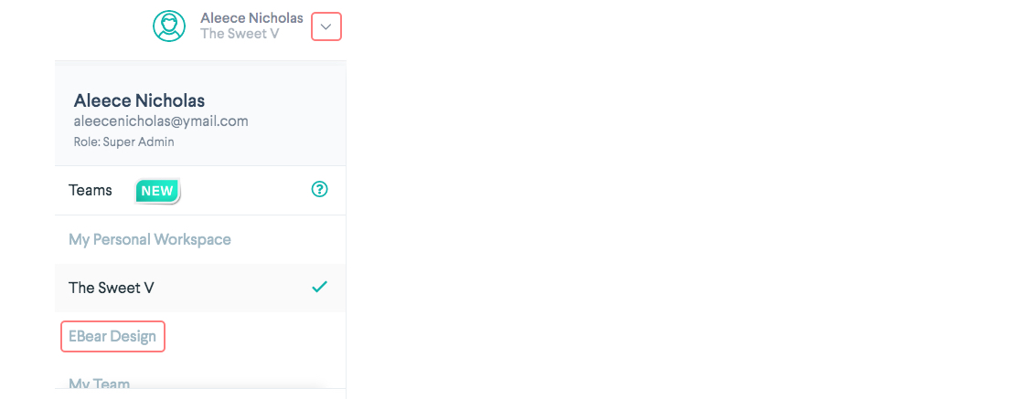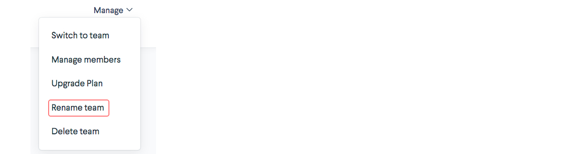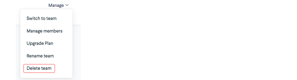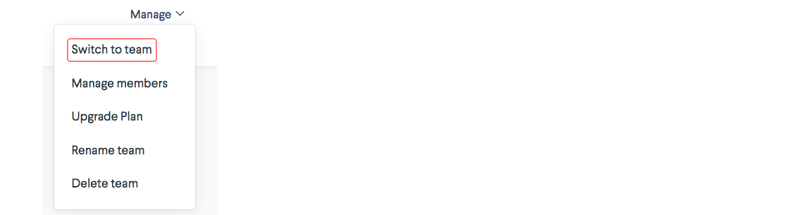 - Hover over the team that you want to switch to. The Manage drop-down menu appears.