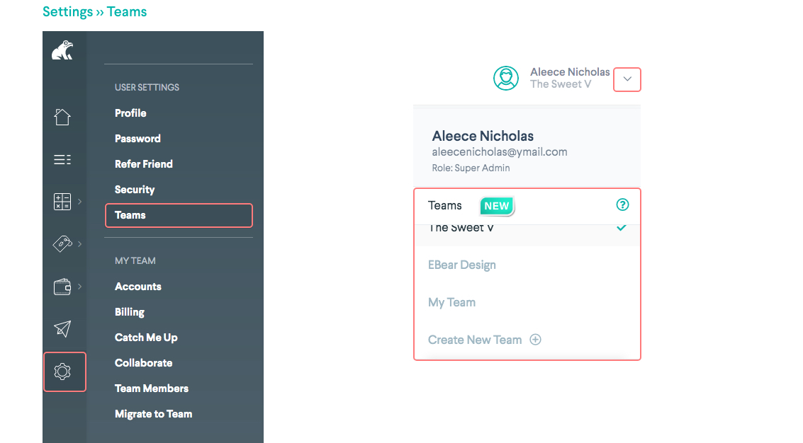 Greenback supports the ability to work with multiple teams (think of teams as organizations) from a single Greenback user account.