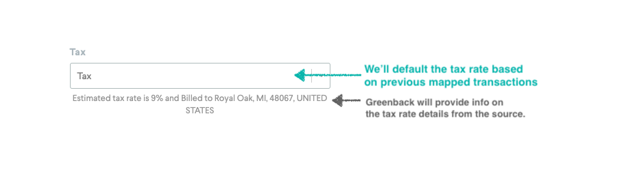 As you export transactions, Greenback is always learning how best to map transaction data to the appropriate accounts in your accounting file. For sales taxes, Greenback will look for previously exported sales transactions that match the postal code of the current transaction and default to the appropriate tax rate/jurisdiction. Sales tax rate mappings can be overwritten at any time by manually defining a different tax rate from the drop menu.