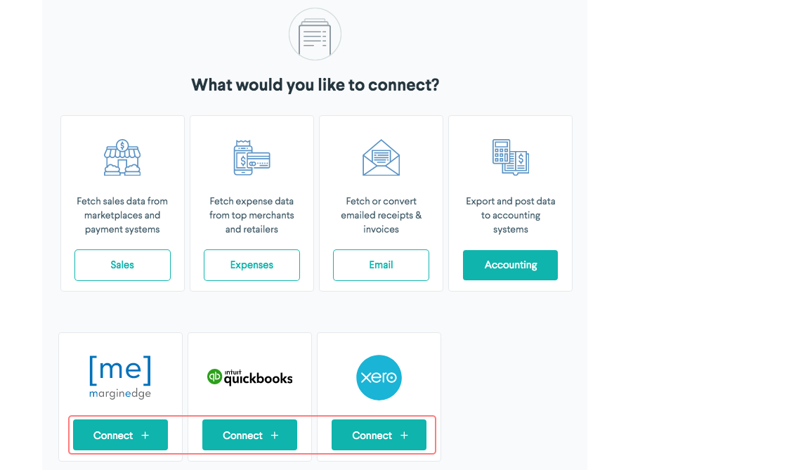 - Select the accounting program you would like to connect.
