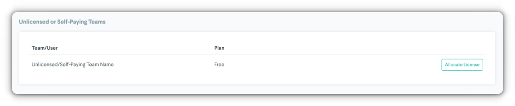 This area shows the clients that do not have a license or are paying for their own. You can allocate licenses from this area.