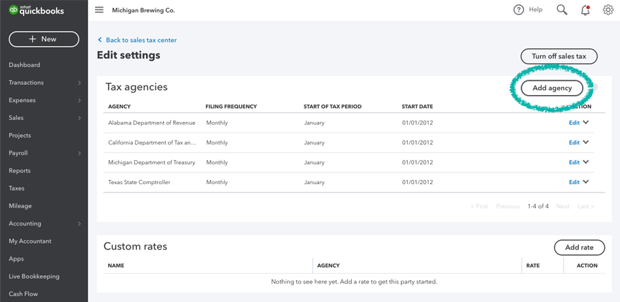 Configuring QuickBooks for sales tax