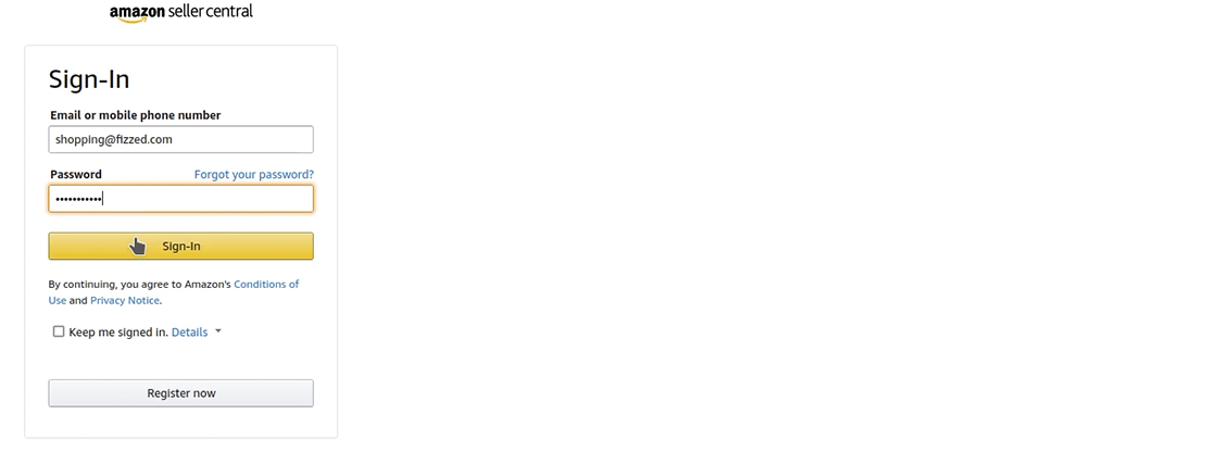- You will be redirected to an Amazon Seller authorization page. Enter your Amazon Seller credentials and select Sign-In
