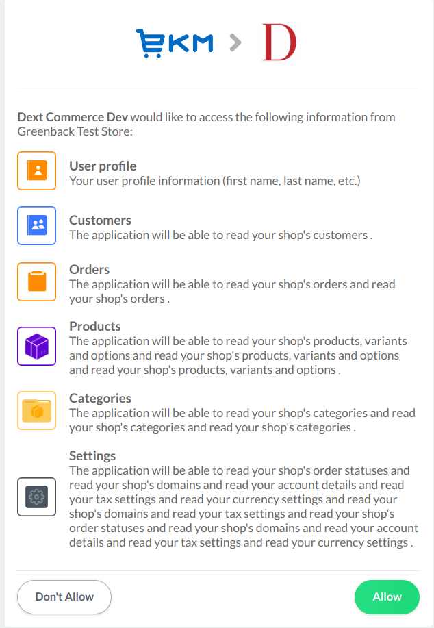 You will be taken to the EKM authorization page. After reading the details, select Allow Access