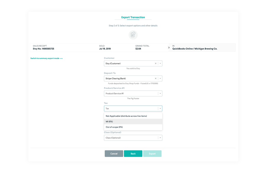 When exporting transactions Greenback will ask you to choose the appropriate tax code from a list of supported tax codes configured within your accounting program. To help you choose the correct tax code, Greenback will also display the tax jurisdiction and tax rate from the transaction as provided by the upstream provider.