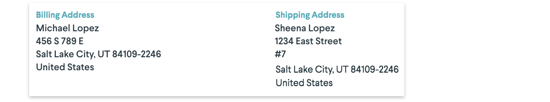 The customer/contact record on a Greenback transaction consists of name and address. Customer/contact records are found for both billing and shipping.
