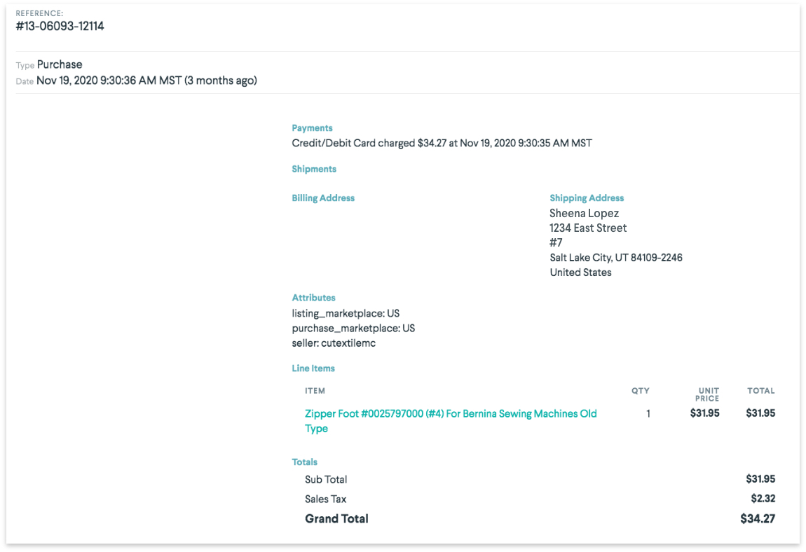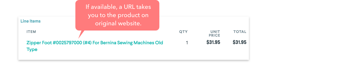 Each transaction on Greenback contains one or more line items. Line items represent the products or services you purchased or sold. Line items may also contain attributes specific to the upstream provider such as a model number.